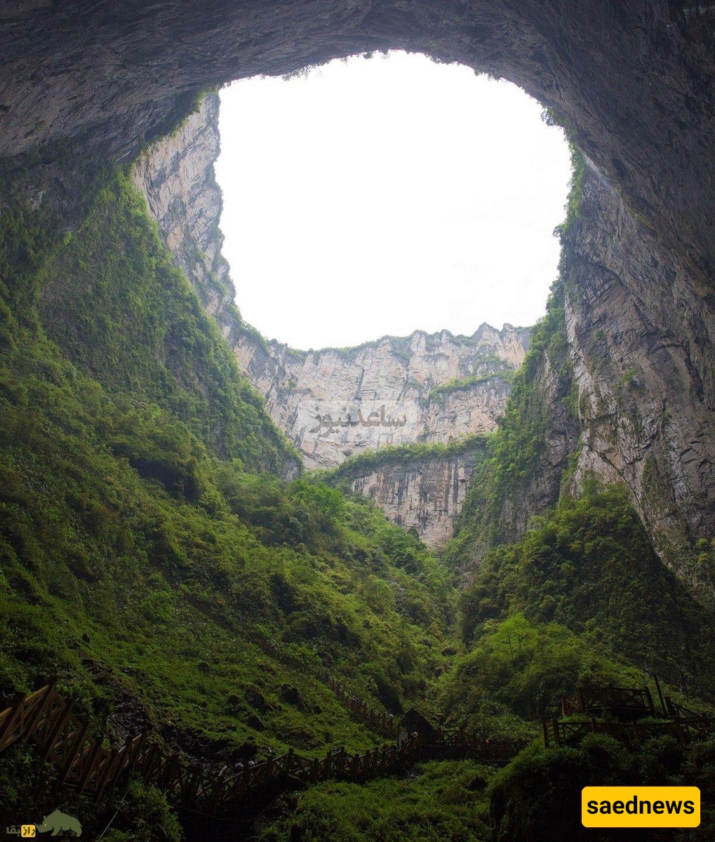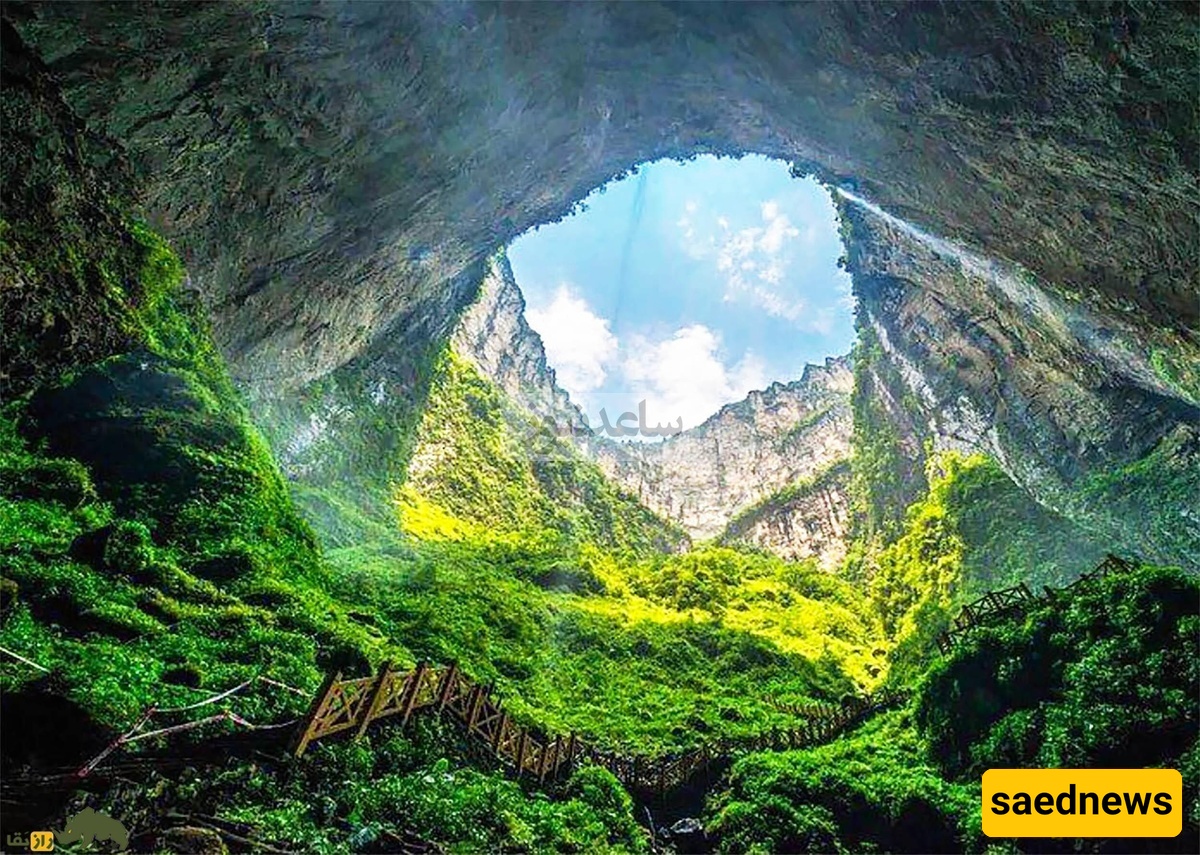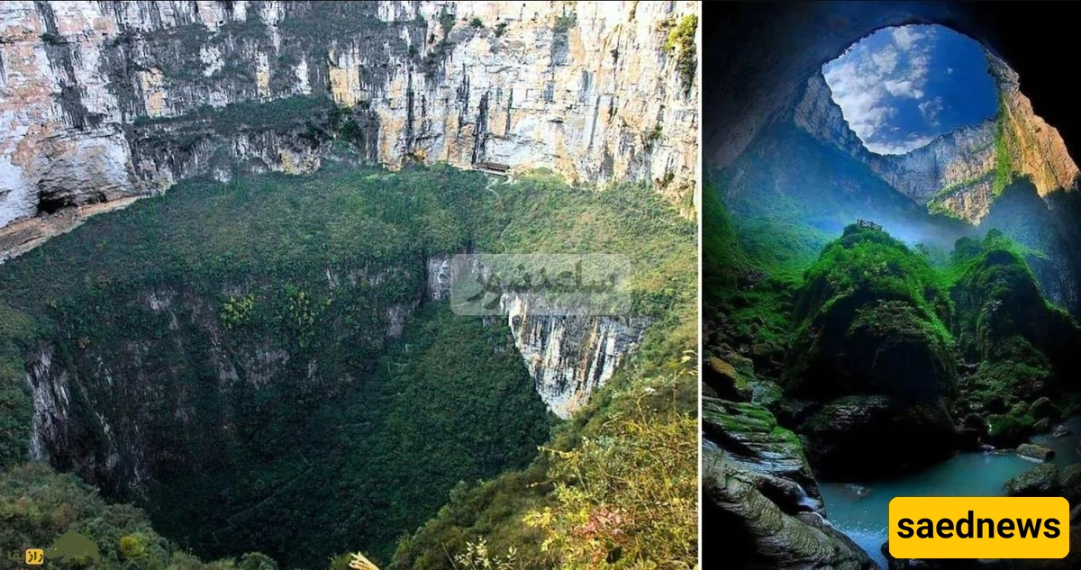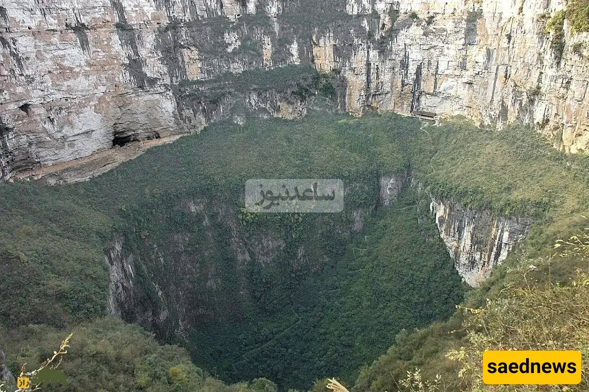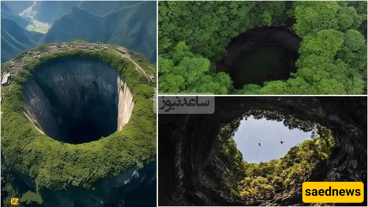 ساعدنیوز: تغوص حفره الجنه فی الصین، أکبر حفره طبیعیه فی العالم، إلى أکثر من 660 مترًا عمقًا مع هیکل مدرج. تجعل التیارات الهوائیه الغریبه، والأصوات الصدى، و"الغابات المعلقه" منها أعجوبه طبیعیه غامضه.