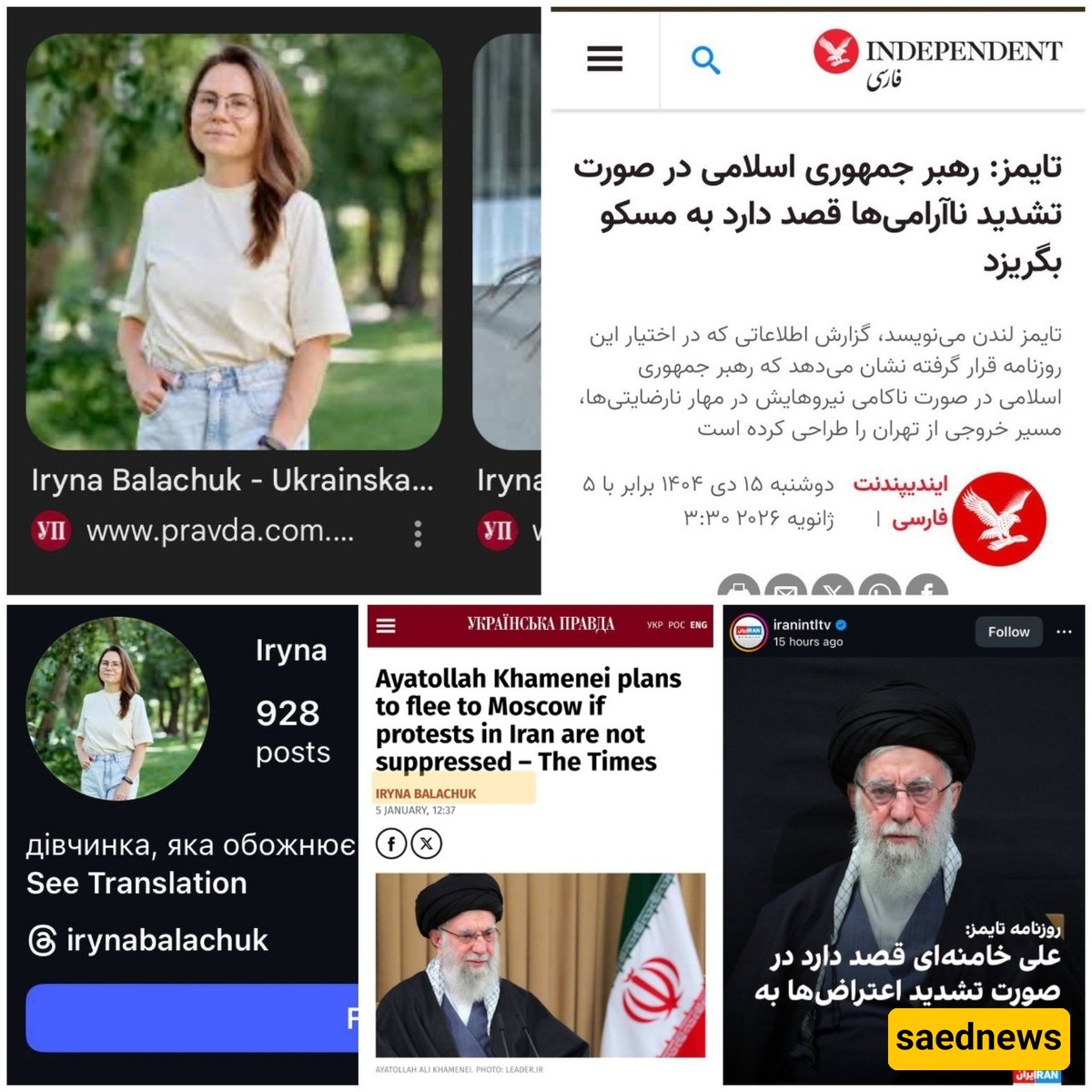 ساعدنیوز: بینما تزعم وسائل الإعلام الفارسیه المعادیه، وسط ضجه کبیره، أن هناک خططًا لمغادره القیاده البلاد متجهه إلى موسکو، تُظهر التحلیلات الفنیه أن هذه الأخبار لیست تقریرًا موثوقًا من صحیفه The Times of London، بل إعاده نشر غیر متقنه لکتابات ناشط أوکرانی على موقع إلکترونی غیر موثوق.