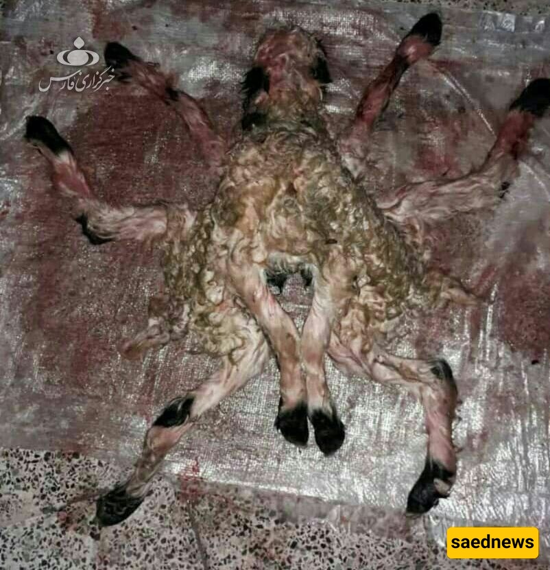 وفقًا لخدمه المجتمع التابعه لوکاله ساعدنیوز، نقلاً عن وکاله فارس للأنباء، وُلِد خروف بثمانیه أرجل لیله أمس فی مزرعه أحد سکان سوریان بمحافظه بافانات. وکان خبیر بیطری حاضرًا فی الموقع.