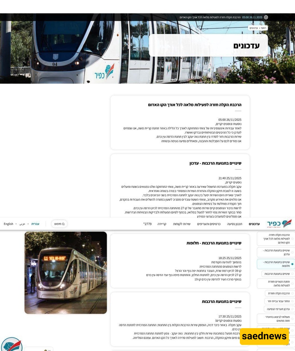 ساعدنیوز: شبکه القطارات الخفیفه فی القدس المحتله تتعرض لتعطیلات واسعه، ما یضطر لوقف الخدمه لساعات وإخلاءات