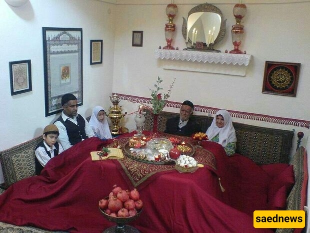فی عشیه یَلدا، تضج المنازل الإیرانیه بالحماس بینما تستعد العائلات للاحتفال. تاریخیًا، کانت التجمعات تدور حول النیران المفتوحه، ولاحقًا حول الکورسی—طاوله منخفضه بها مدفأه تحتها، وتغطى بالأغطیه. الیوم، تُقام الاحتفالات عاده فی الداخل مع التدفئه الحدیثه، وغالبًا ما تُعتبر یَلدا مناسبه للتجمع العائلی طوال اللیل، یستضیفها الأجداد أو الأقارب کبار السن.