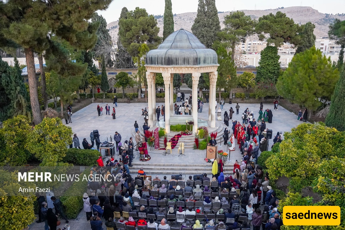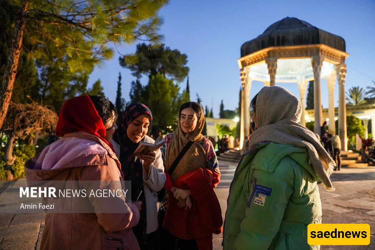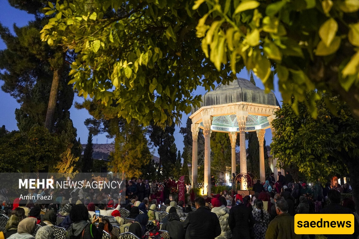 ساعدنیوز: احتشد الإیرانیون عند ضریح الشاعر الفارسی الشهیر حافظ فی شیراز للاحتفال بلیله یلدا، إحدى أقدم وأعز التقالید الثقافیه فی إیران.