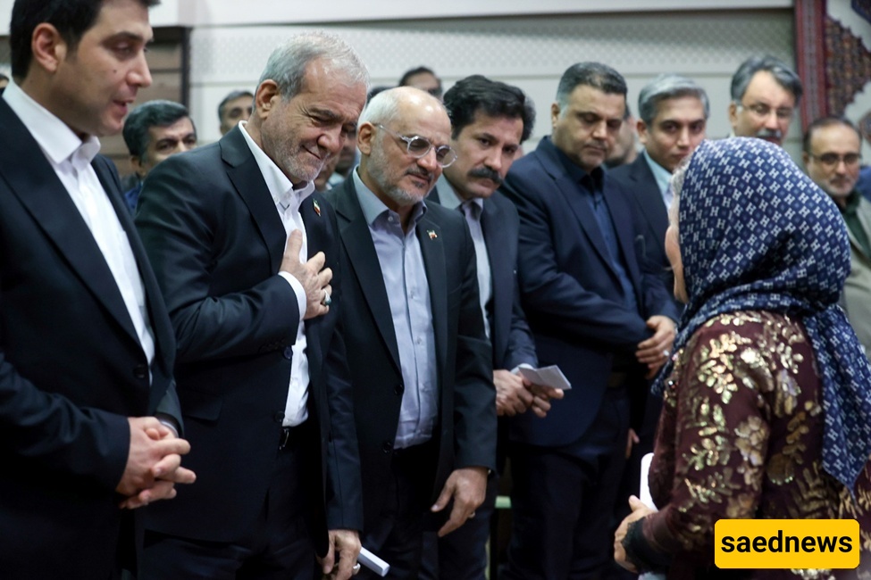 خلال زیارته الأخیره للمحافظه العزیزه کردستان، التقى بأم کردیه طیبه کرّست دیه ابنتها لبناء المدارس. وعندما سمع قصه هذه الابنه الکردیه، امتلأت عیناه بالدموع. لم تکن دموعًا عادیه؛ فالرجل نادرًا ما یبکی. هذه الدموع وُلدت من تفانٍ عمیق—لإیران، ولأم أصبحت الآن أمًّا لکل أطفال إیران. رغم أنها لم تعد تحتضن ابنتها، إلا أن حضنها الآن مفتوح للوطن. ویُبدی بزشکیان احترامه لهذا الحب الأمومی ویقول: