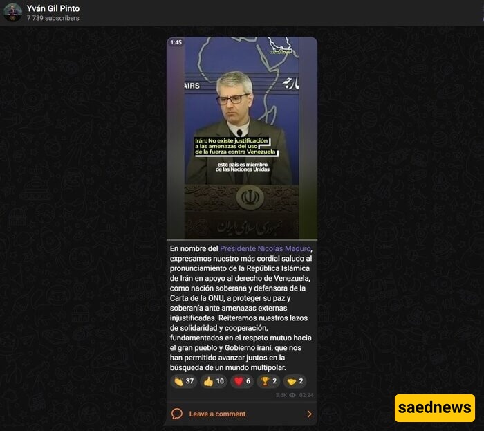 إیفان إدواردو جیل بینتو یشارک فیدیو على قناته الرسمیه فی تلغرام یظهر تصریحات إسماعیل بغائی، المتحدث باسم وزاره الخارجیه الإیرانیه