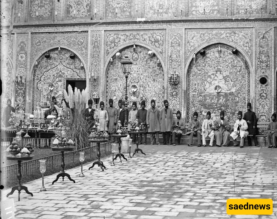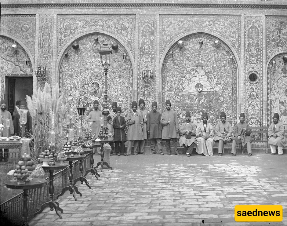 تُظهر الصورتان الأولیان الملتقطتان فی قصر جولستان الضیوف الملکیین، والمسؤولین الحکومیین، والمقربین من العائله الملکیه.