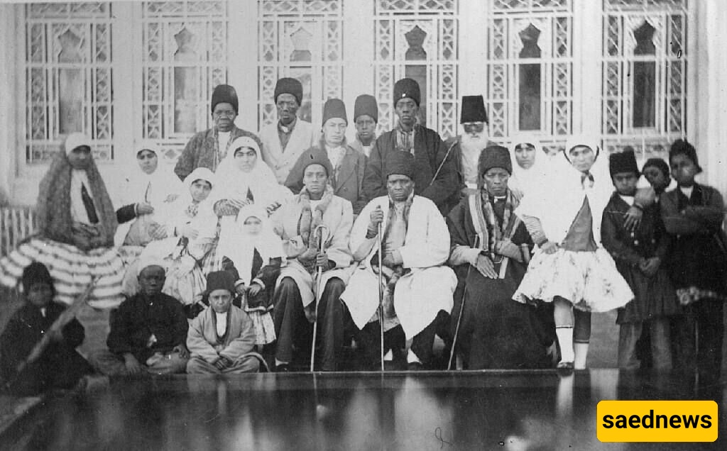 هنا، یمکنکم رؤیه صوره لمجموعه من النساء والخادمات والخصیان فی حریم ناصر الدین شاه.