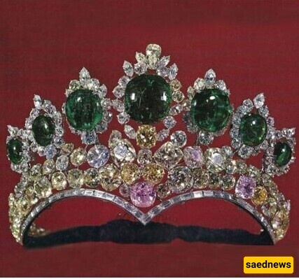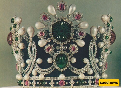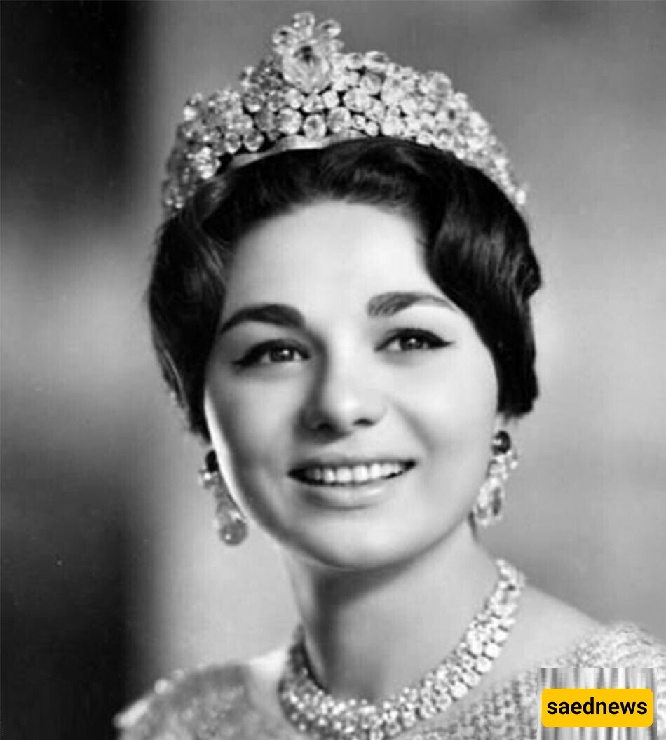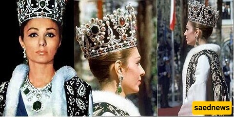 هذا التاج نصف الکامل مصنوع من البلاتین، ومرصع بـ 17 حجر فیروز من نیشابور وألماس مقطوع. یظهر فی العدید من الصور الشهیره لفرح بهلوی إلى جانب أزیاء من تصمیم کیان خسروی. هذه القطعه الرائعه محفوظه حالیًا فی المتحف الوطنی للمجوهرات فی إیران.