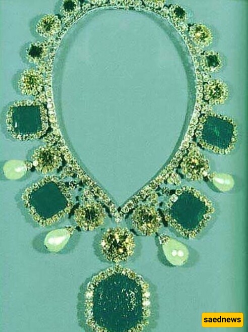 تم تکلیفه من قبل البلاط الملکی وصنع من نفس العلامه التجاریه للتاج، ویضم زمرده مرکزیه کبیره محاطه بزمرّدات أصغر ولآلئ متناسقه مثبته بالذهب والبلاتین.