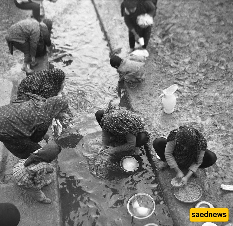 ساعدنیوز: صوره قدیمه تظهر الأمهات یغسلن الصحون والملابس على ضفه النهر