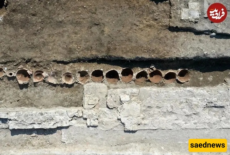 وخلال نفس حفریات عام 2025، تم الکشف عن صف من 19 جره فخاریه کبیره، أو ما یُعرف بـ الأمفورات. وفی التنقیب الذی أُجری عام 2024، تم العثور على 23 أمفوره مماثله. وتشیر التحلیلات إلى أن هذه الأوعیه لم تُستخدم لتخزین أو نقل البضائع، بل تم دفنها فی الأرض لتعزیز التربه، وتحسین الصرف، وتثبیت أساسات المبانی الطویله والضیقه—على الأرجح کانت مستودعات.