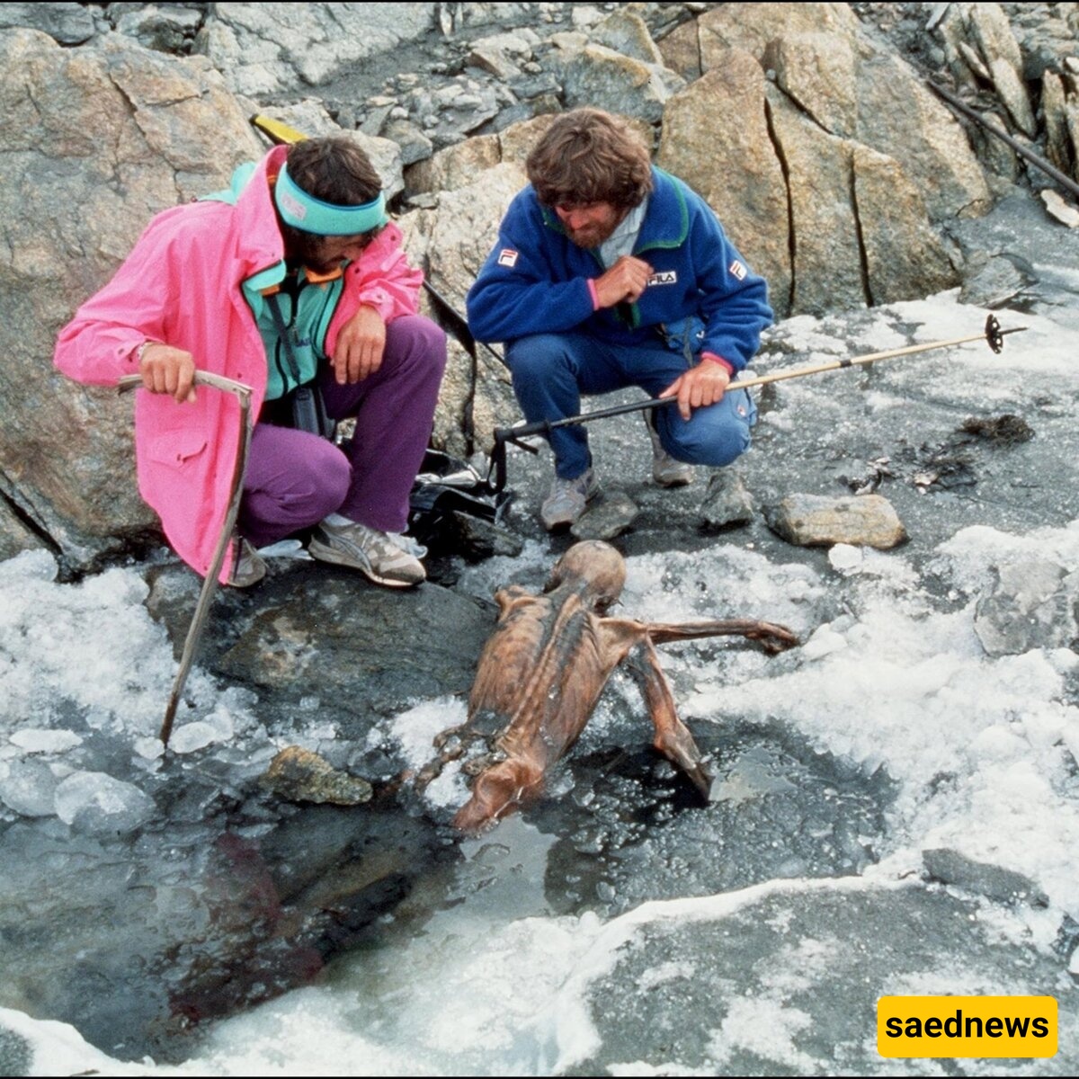 لکن تبین لاحقًا أن هذه البقایا المحنطه قد حفظت فی الجلید لأکثر من 5,300 عام. وأصبح الرجل القدیم معروفًا باسم "رجل الجلید".