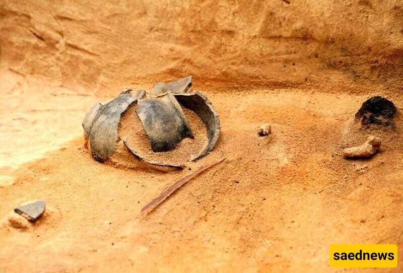 کما تم العثور على وعاء خزفی مکسور فی قبر آخر من العصور الوسطى.