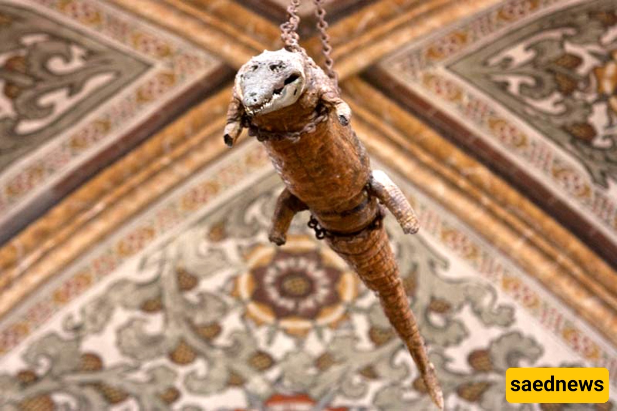 لا أحد یعرف بالضبط کیف انتهى المطاف بهذا التمساح داخل الکنیسه. ومع ذلک، قبل قرون، کانت الحیوانات مثل التماسیح والثعابین تُعتبر أدوات للشیطان، وربط هذا التمساح الکبیر قد یرمز إلى انتصار الکنیسه على الشر.