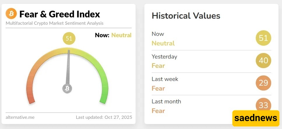 ساعدنیوز: بعد أن خرج مؤشر الخوف والجشع، الذی یقیس معنویات السوق العامه، من منطقه "الخوف" ووصل إلى المستوى "المحاید"، أصبح المؤشر عند 51 من أصل 100، مرتفعًا من 40 یوم السبت، مسجّلًا زیاده بأکثر من 20 نقطه خلال الأسبوع الماضی.