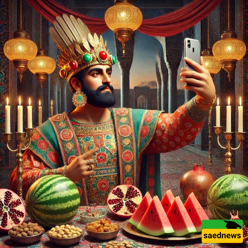 هذه الصوره أکثر من مجرد تمثیل جمیل للیله یلدا؛ إنها تجربه تأخذ المشاهدین فی رحله عبر الزمن، لتتیح لهم التفاعل مع عظمه التاریخ الإیرانی بأسلوب حدیث وممتع. هل یمکنک تخیل الإمبراطور الهخامنشی بهذه الهیئه؟