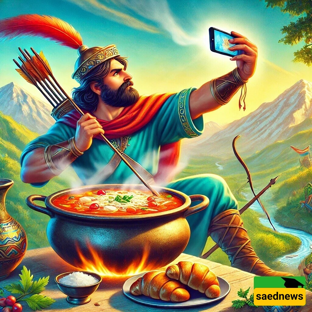 وتظهر صوره مذهله ترافق القصه مزجًا بین التاریخ والتقنیه، حیث یصور آرش الرامی وهو یستمتع بطبق من الیخنه أثناء التقاط سیلفی — تکریمًا خیالیًا لأعظم رامٍ فی أساطیر إیران.