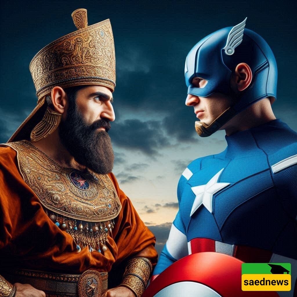 حواجز اللغه والصدام الثقافی: على طول الطریق، تظهر التحدیات. یرید کابتن أمریکا إلقاء خطاب تحفیزی، لکن کوروش یرد بهدوء: "لدی میثاق لحقوق الإنسان. لا حاجه لأی خطاب." وفی الوقت نفسه، یثنی کوروش على الأطباق الفارسیه التقلیدیه مثل الکباب، بینما لا یرى کابتن إلا البرغر. هذا الصدام الثقافی یخلق سلسله من اللحظات الفکاهیه.