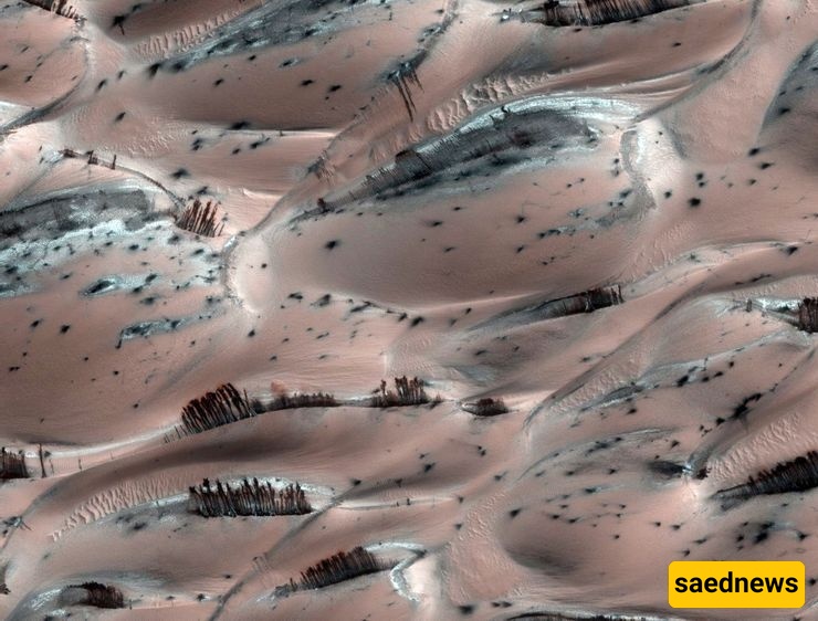 الشجره أدناه لیست غابه مریخیه بل وهم بصری. تظهر خطوط داکنه فی الرمال نتیجه تبخر جلید ثانی أکسید الکربون، مکونه أشکالًا تشبه الأشجار. إنها ببساطه تفاعل کیمیائی یخدع العین.