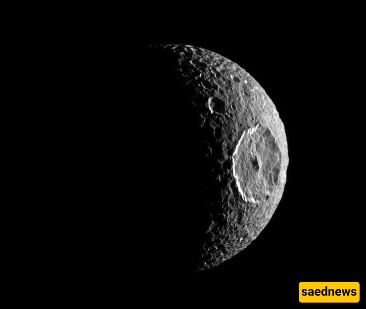 عند النظر إلى هذه الصوره، من المدهش إدراک أن نجمه الموت من سلسله حرب النجوم لیست مجرد خیال—بل موجوده فی الواقع. لا تقلق، فهی لیست مرکبه فضائیه عامله؛ بل قمر زحل "میمس" الذی یحتوی على فوهه هائله تُدعى "هیرشیل"، مما یمنحه مظهر نجمه الموت. ومن المثیر للاهتمام أن هذه الفوهه لم تُکتشف حتى عام 1980، مما یوحی بأن جورج لوکاس استلهم خیاله من مکان آخر.