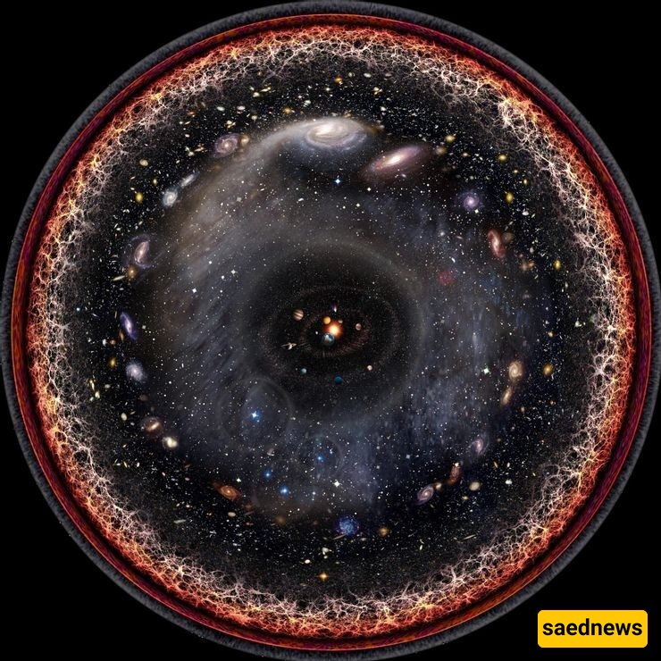 تلتقط هذه الصوره اللوغاریتمیه المذهله، التی أنشأها بابلو کارلوس بوداسی، الکون بأکمله فی إطار واحد: من النظام الشمسی فی المرکز، الکواکب الداخلیه والخارجیه، حزام کویبر، سحابه أورت، ألفا سنتوری، ذراع بیرسیوس، درب التبانه، أندرومیدا، المجرات القریبه، الشبکه الکونیه، الخلفیه المیکرویه الکونیه، إلى البلازما الخفیه لانفجار الکون عند الحافه.