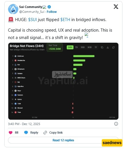 ساعدنیوز: فی تحول ملحوظ فی سوق العملات الرقمیه، تجاوزت شبکه Sui شبکه Ethereum من حیث التدفقات الیومیه لرأس المال. وقد لفت هذا التطور انتباه المحللین إلى تغیّر اتجاهات السیوله، وظهور المشاریع الناشئه، وتحول ترکیز المستثمرین من سلاسل الکتل التقلیدیه إلى منصات الجیل القادم.