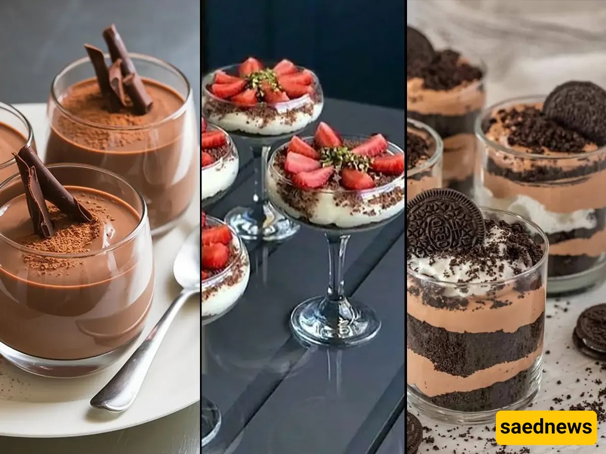 تتوفر الحلویات بنکهات متعدده—الفانیلیا، الفواکه، الزعفران، الشوکولاته، والمزید—لکل منها عشاقه المخصصون. وتحتل تحلیه الشوکولاته مکانه خاصه بسبب غناها وطعمها الفاخر. فهی مصنوعه من حلیب الکاکاو، الشوکولاته، السکر، الکریمه، ومسحوق الجیلاتین، وتتمیز بقوام ناعم ودقه عالیه، ویمکن تحضیرها بسهوله فی المنزل خلال وقت قصیر.