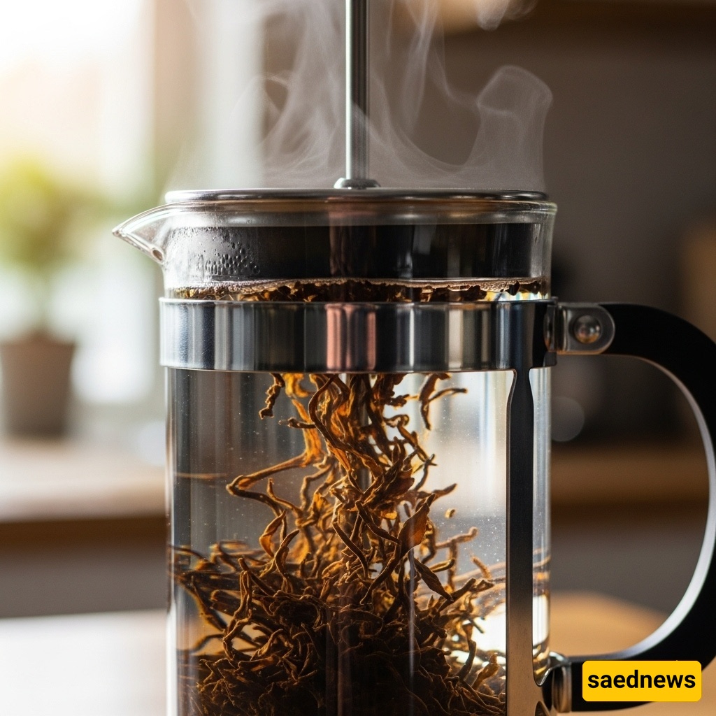 واحده من أبسط الاستخدامات البدیله للمکبس الفرنسی هی تحضیر جمیع أنواع الشای—الأسود، الأخضر، أو الأبیض—وکذلک الخلطات العشبیه. على عکس أکیاس الشای أو المصافی الصغیره التی تحد من حرکه الأوراق، تتیح غرفه المکبس الفرنسیه الواسعه للأوراق أن تتمدد بالکامل، مطلقهً کامل عبیرها ونکهتها وفوائدها الصحیه.