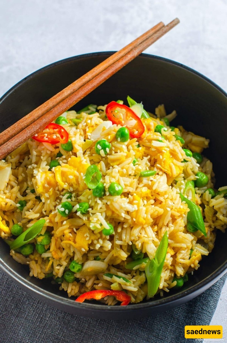 یتناغم أرز البیض المقلی بشکل رائع مع النکهات الصینیه. للحصول على أفضل نتیجه، تأکد من أن الأرز مطبوخ بالکامل ومبرد قبل تقلیبه مع المکونات الأخرى.