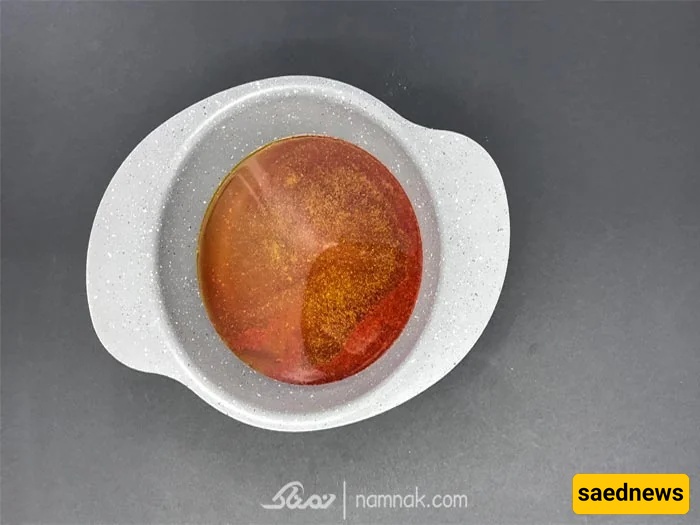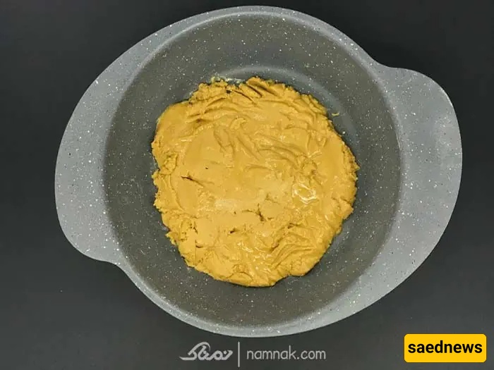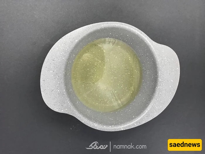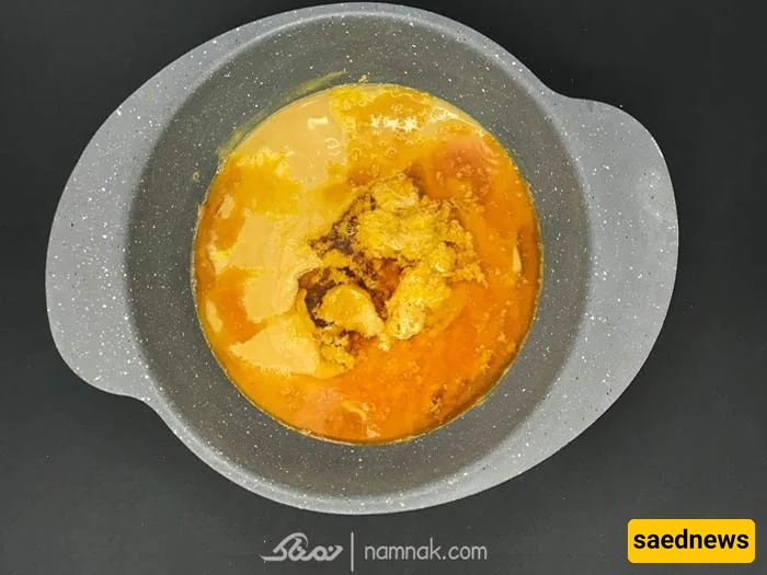 بعد ذلک، أزل الوعاء عن النار وأضف ماء الورد، الهیل المطحون، والزعفران. قلب بلطف للحفاظ على الرائحه العطریه.