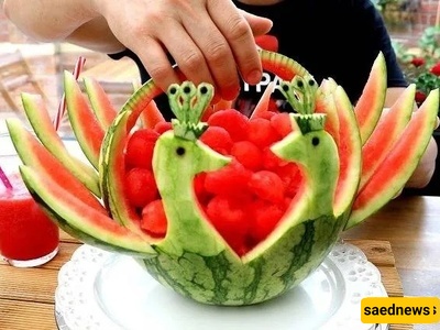 ساعدنیوز: خیار بسیط وأنیق سیکون ناجحًا – تزیین البطیخ على شکل سله طاووس. یمکنک ملء السله بالشمام، البطیخ، أو أی فاکهه تحبها. أعزائی الأصدقاء، تأکدوا من مشارکه آرائکم فی التعلیقات.