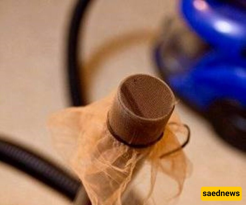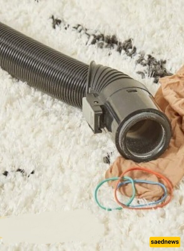 العثور على الذهب المفقود: استخدم جورب نسائی—لا یهم لونه، داکن أم فاتح! تأکد فقط من أن الجورب مصنوع من النایلون. ثم قم بتمدید الجورب فوق فوهه المکنسه الکهربائیه لمنع أی شیء من الدخول إلى الأنبوب.