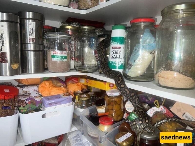 وفقًا لـ “ساعد نیوز”، نقلاً عن “فرارو”، صُدم أحد العائلات فی بریسبان عندما توجهوا إلى مخزن المطبخ للحصول على بعض المکونات، لیجدوا بین الملح والمعکرونه ثعبانًا ضخمًا.