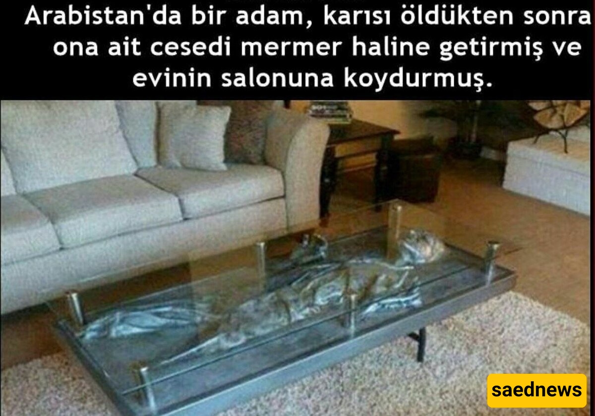 وفقًا لقسم المجتمع فی ساعدنیوز: حول جسده إلى رخام، ووضع زوجته کطاوله فی غرفه المعیشه لتبقى دائمًا فی مرأى العین