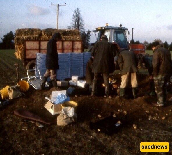 إریک لایسی وزوجته غریتا یفحصان العملات التی وجدها فی مزرعه بسافولک.