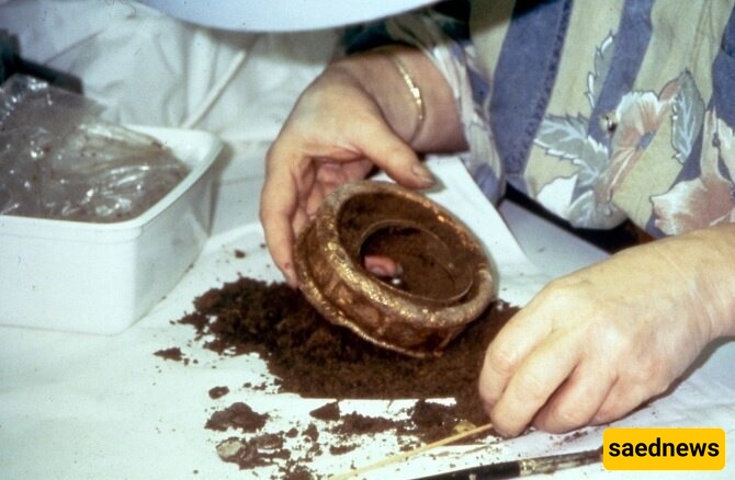 تنظیف أحد الأساور الذهبیه المکتشفه.