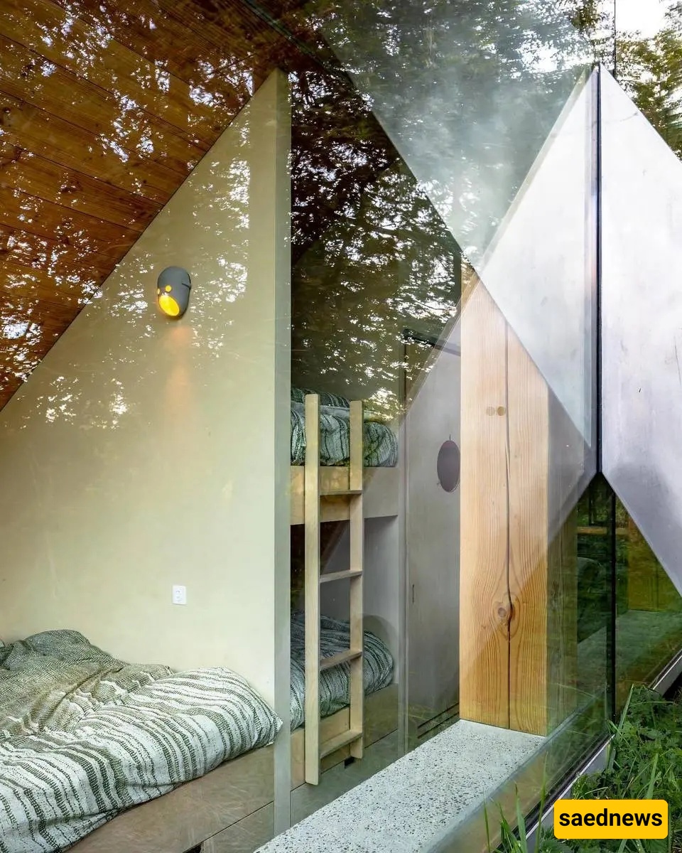 یخترق عمود فرید المائل السقف الأخضر، لیعمل لیس فقط کعنصر هیکلی، بل ویوفر أیضًا أماکن تعشیش للطیور والخفافیش. یربط هذا العنصر ببراعه بین العماره والطبیعه، مجسّدًا مفهوم العیش الصغیر والمستدام والصدیق للبیئه.