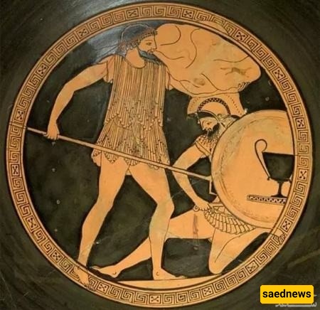 فی الصوره أدناه، یظهر بوسیدون على الیسار وهو یقاتل عملاقًا على الیمین (من المحتمل أن یکون بولیبوس).