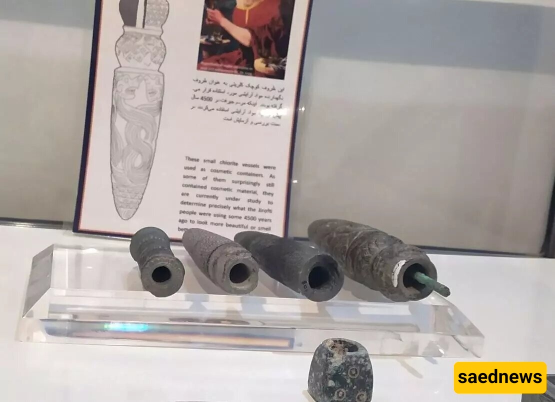 وقد وُجدت قارورات حجریه مشابهه تحتوی على مواد تجمیلیه فی مصر وأناضول وإیران وبلاد ما بین النهرین، إلا أن الباحثین یقولون إن تعقید الترکیبات التجمیلیه الإیرانیه القدیمه قد تأثر بتوفر خامات معدنیه متنوعه فی الهضبه الإیرانیه الوسطى، مما یشیر إلى قدره الناس آنذاک على إنتاج منتجات تجمیلیه متطوره.