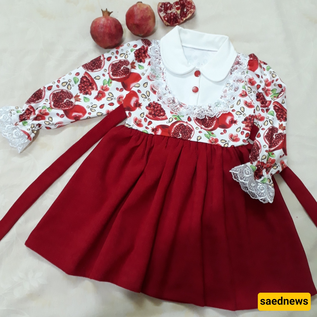 إذا أردت أن تکون إطلاله طفلتک فریده ومفعمه بالاحتفال، اختاری فساتین تحمل نقوشًا للبطیخ أو الرمان أو الأوراق الخضراء أو بذور تشبه الیاقوت. هذه التصامیم مثالیه للأطفال وبعض المراهقات. وللمراهقات والکبار، هناک نسخ أکثر بساطه وراقیه من هذه النقوش، مثل الفساتین القصیره أو المتوسطه مع نقوش دقیقه مستوحاه من یَلْدَا لتألقی خلال الاحتفالات.