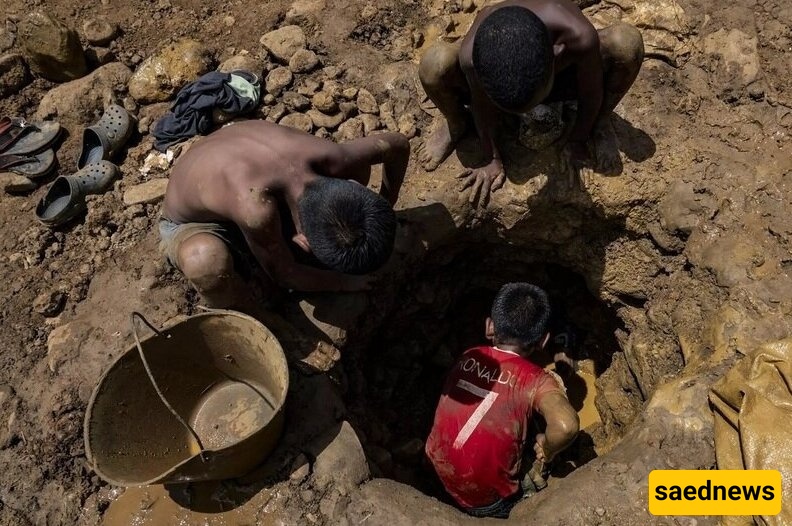 وفقاً لتقاریر خدمه المجتمع فی "ساعد نیوز"، یعمل حوالی 1000 طفل فی تعدین الذهب غیر القانونی فی فنزویلا، وهی صناعه مزدهره فی هذا البلد الغنی بالموارد.
