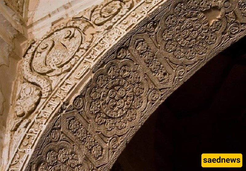 الزخارف الجصیه الرائعه فوق المحراب، التی تأسر الأنظار بتفاصیلها الدقیقه.