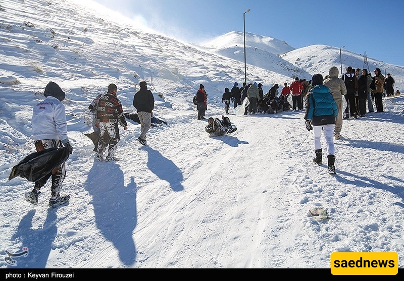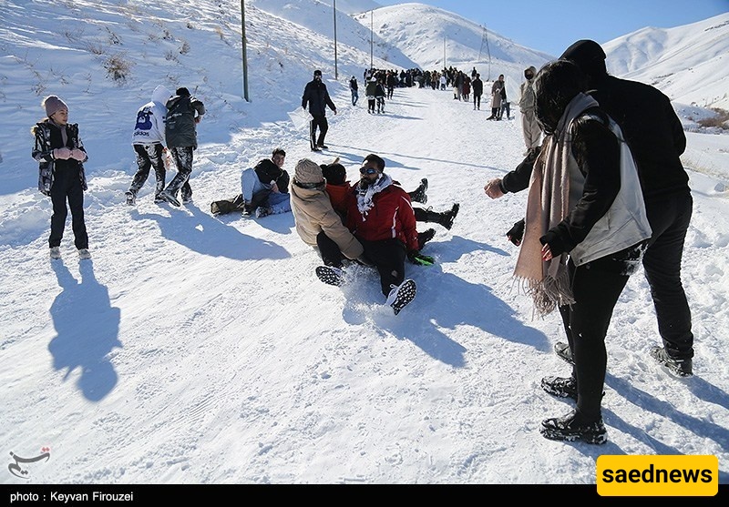 یتدفق الناس إلى تلال سنندج المغطاه بالثلوج للترفیه الشتوی