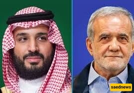 وذکرت وکاله الأنباء السعودیه أن بن سلمان تلقى اتصالا هاتفیا من الرئیس الإیرانی مسعود بزشکیان، أوضح خلاله مستجدات الأوضاع فی بلاده، واستعرض جهود الحکومه الإیرانیه فی هذا الشأن، کما استعرض مستجدات المباحثات بشأن الملف النووی.