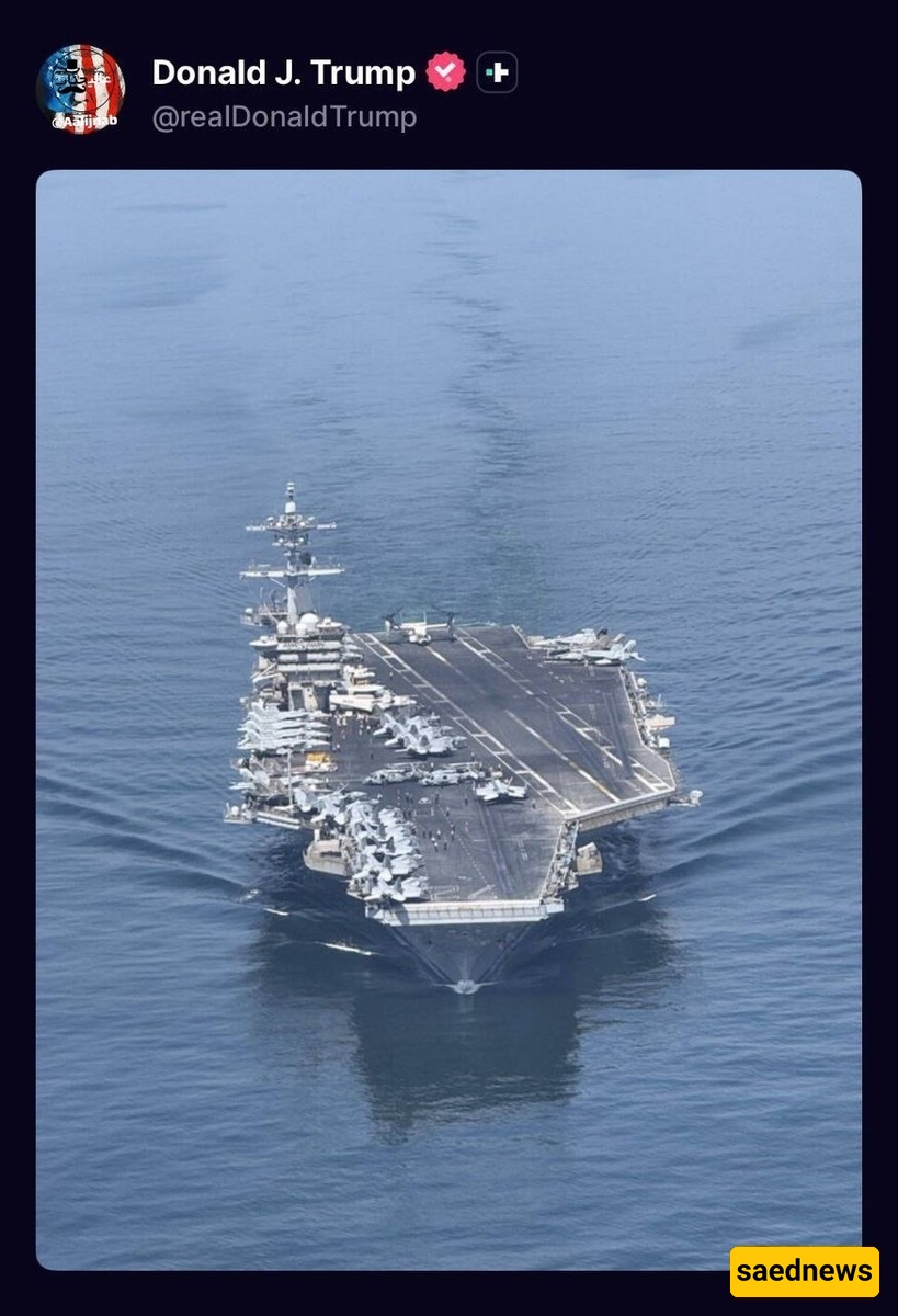 ساعدنیوز: دونالد ترامب، رئیس الولایات المتحده، نشر مؤخرًا على حسابه الرسمی فی X (تویتر سابقًا) صوره جویه واحده لحامله الطائرات یو إس إس جیرالد ر. فورد، دون أی نص أو شرح مرفق، مسلطًا الضوء على قوه البحریه الأمریکیه.