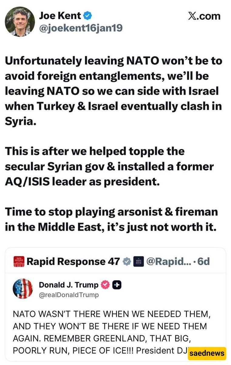 ساعدنیوز: JOE KENT، الرئیس السابق لمرکز مکافحه الإرهاب فی الولایات المتحده، یحذر من احتمال هجوم إسرائیلی على ترکیا فی أحدث تغریده