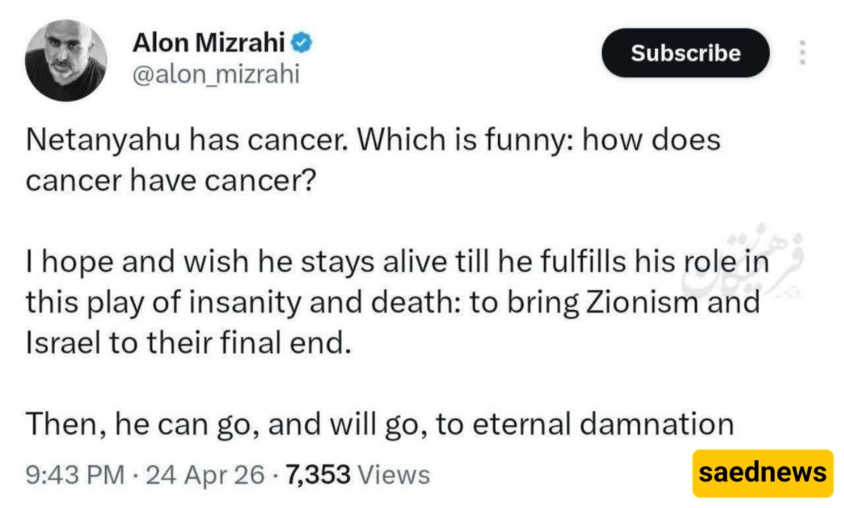 ساعدنیوز: تغریده مثیره للاهتمام لناشط مناهض للصهیونیه بشأن تشخیص نتنیاهو بالسرطان