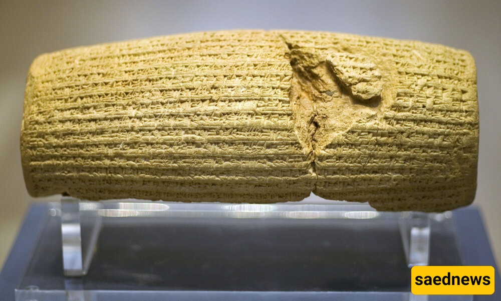 ساعدینوز: أسرار میثاق کورش العظیم: أسطوانه أخمنیدیه من الطین، حریه الدین، عوده المنفیین، وعرضها فی المتحف البریطانی