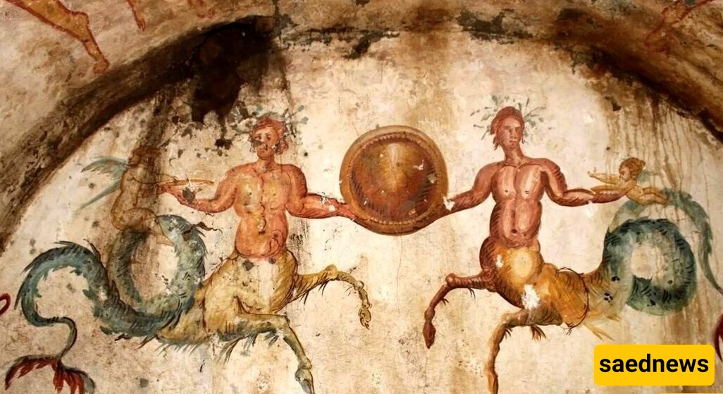 وفقًا لمکتب المجتمع فی وکاله ساعدنیوز، فقد کان علماء الآثار فی إیطالیا متحمسین العام الماضی بعد اکتشاف قبر عمره 2200 عام مزین برسومات جداریه رائعه، بما فی ذلک تصویر سیربیروس، کلب الحراسه ثلاثی الرؤوس لعالم الموتى، وإکثیوسینتوریات—مخلوقات بحریه أسطوریه لها رؤوس وأجسام بشریه وأرجل أمامیه حصانیه وذیول سمکیه.