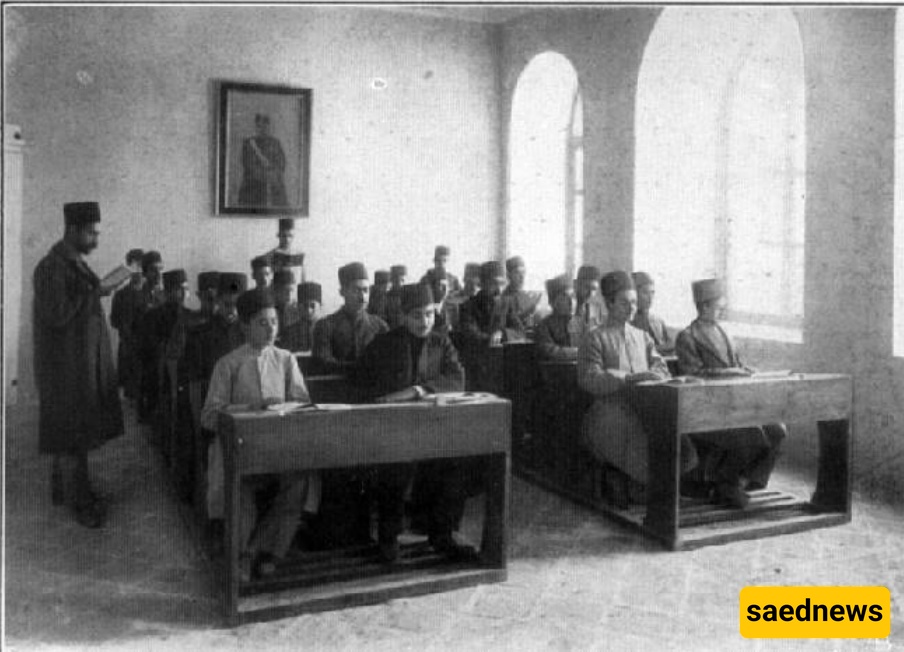 وفقًا لخدمه التاریخ والثقافه فی ساعد نیوز، لنتخیل أننا سافرنا بالزمن إلى الوراء—قبل حوالی مئه عام، بعد انتهاء الحرب العالمیه الأولى مباشره. مجموعه من المراهقین تجلس فی فصل دراسی فی دارالفنون، أول مدرسه علیا حدیثه فی إیران، التی أسسها الأمیر الکبیر أمیر کبیر قبل أکثر من نصف قرن بحلم إدخال العلوم الجدیده إلى البلاد. هم مندمجون فی التعلم. یقف المدرس أمامهم، یقدم درسًا—ربما فی الریاضیات، أو الطب، أو الهندسه، أو التاریخ. وفوقهم یتدلى بورتریه کبیر لأحمد شاه قاجار.