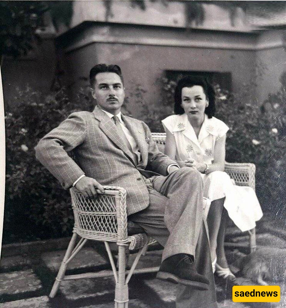 صوره أخرى نادره تظهر فوزیه فؤاد مع زوجها الثانی، إسماعیل شیرین بیه، فی فناء منزلهما فی مصر، ویعود تاریخها إلى أواخر الأربعینیات.